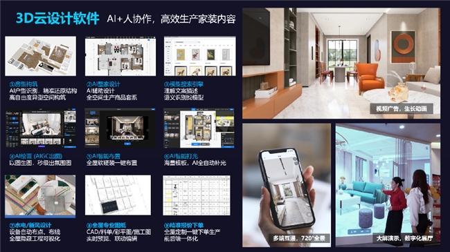本次大会,三维家家居行业AI专家周浩以《AI+营销 赋能家居企业加速出海》为分享主题,展示了三维家的AI工具如何助力家居企业进行场景化营销,提升营销效率和顾客体验,帮助企业从卖单品到卖全空间商品,提升客单值。
