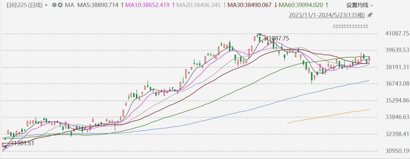 格隆汇5月23日|日经225指数收盘涨1.26%,报39103.22点,收复39000点关口。权重股方面,软银集团涨逾4%,日立涨逾2%。