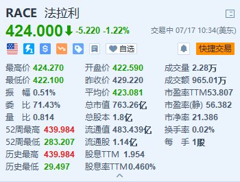 美股异动 | 法拉利跌超1.2% 首款纯电动车型将于明年年底亮相