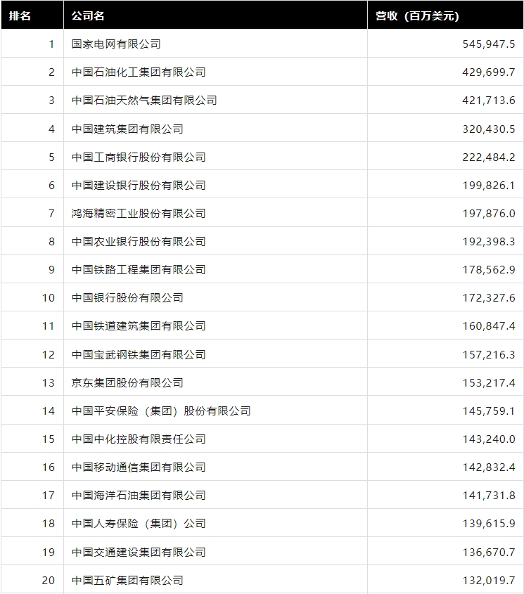 今年500家上榜的中国公司在2023年的总营业收入达到14.6万亿美元,和上年上榜公司相比,下降约3%;净利润达到7064亿美元,较上年下降约1.5%。今年上榜公司的年营收门槛约为37.4亿美元,较去年的门槛提升约9%。按美元计算,2023年中国的GDP总量达到17.89万亿美元,今年榜单中500家公司的收入总和超过中国当年GDP的81%。