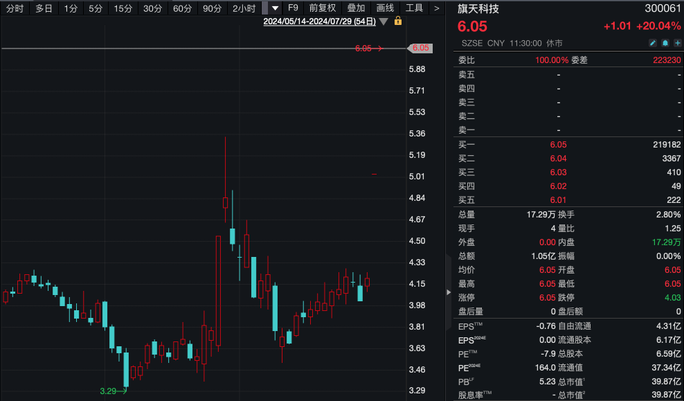 旗天科技连续第2日开盘20%一字涨停;金明精机(300281)高开后亦秒速20cm封板,同样连续2日涨停,股价创2年半来新高。