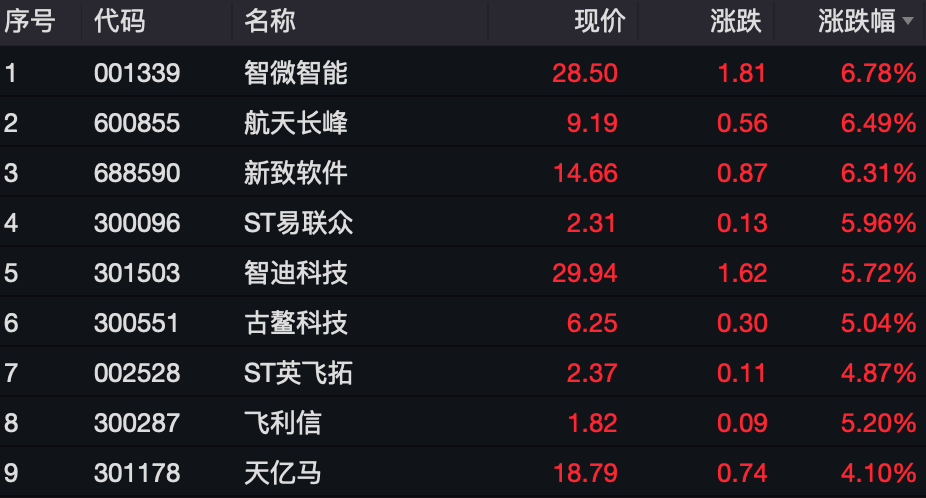 计算机板块表现也比较活跃,智微智能、航天长峰(600855)、新致软件等多股大涨。