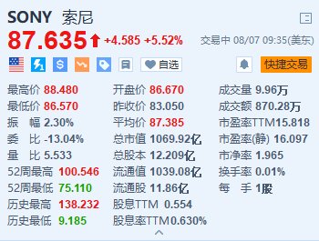 Q2营业利润同比大增73% 索尼盘前涨逾7%详细阅读