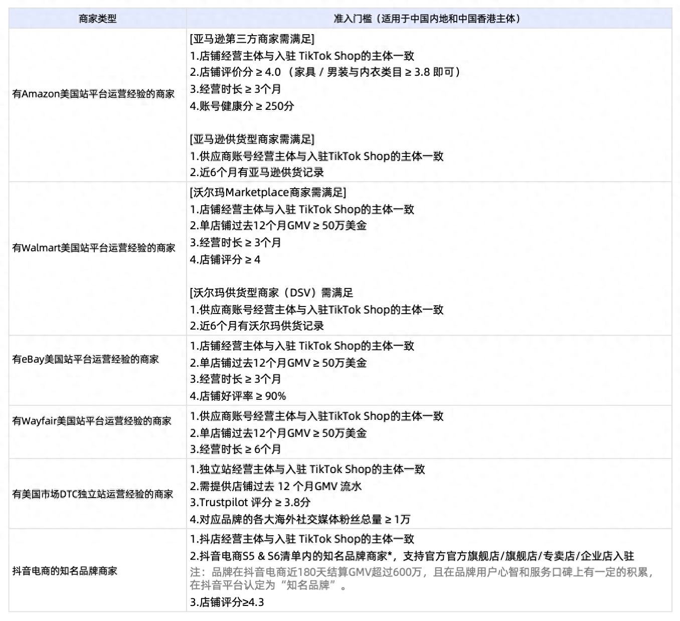 据悉,TikTok Shop美区跨境自运营业务持续增长,越来越多的商家希望加入该平台服务海量美国消费者。TikTok Shop最新的美区跨境自运营商家入驻标准(适用于中国内地主体和中国香港主体商家),鼓励更多在美国电商平台上经营的商家入驻,同时面向抖音电商上的优质出海品牌首次开放。
