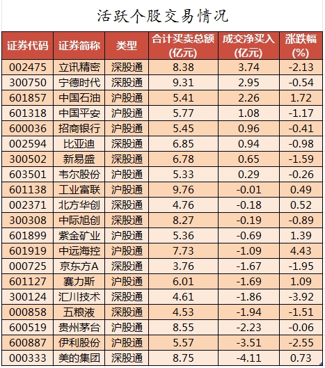 数据复盘丨52股被主力资金减持超亿元 北向资金抢筹立讯精密、宁德时代等