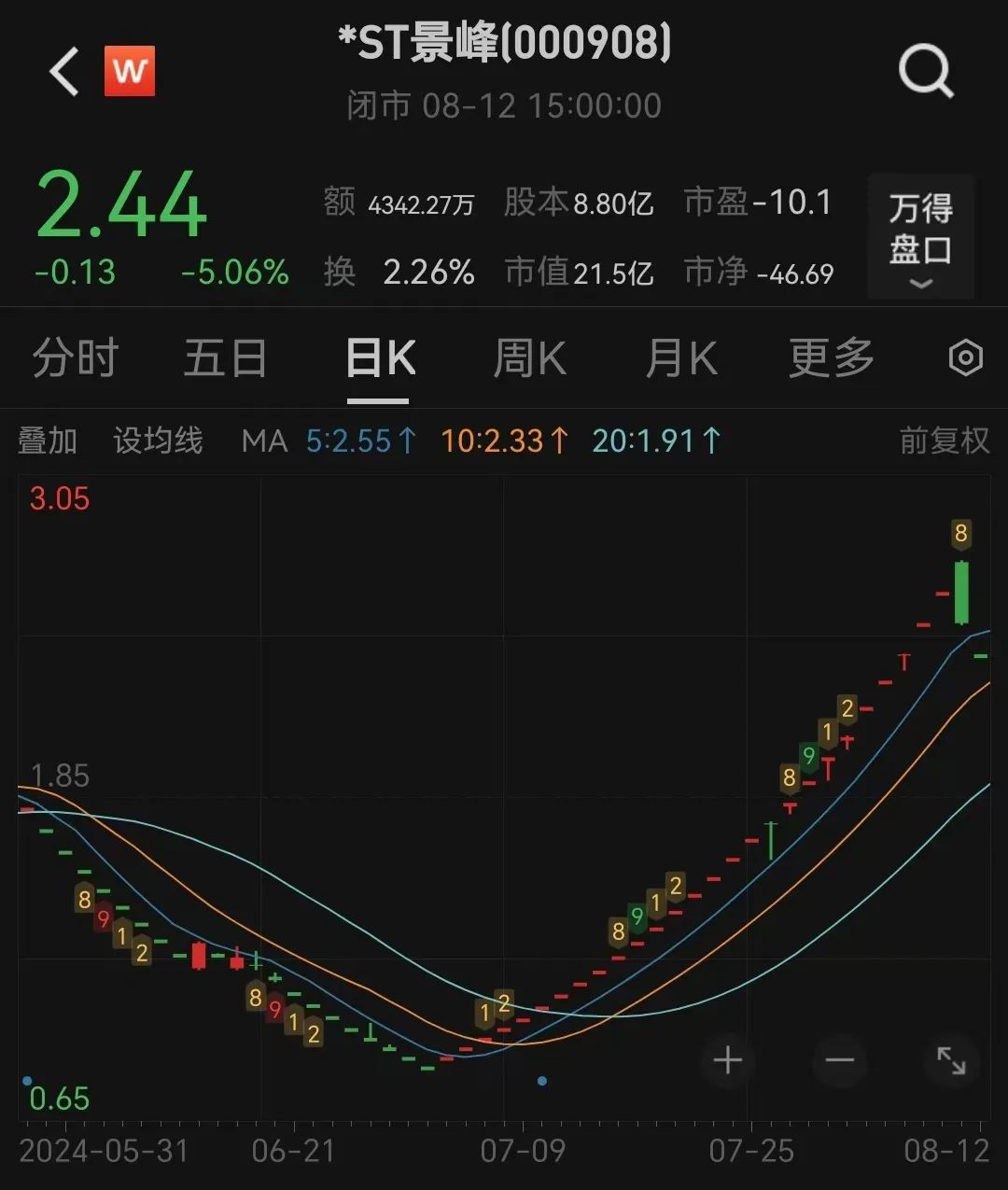 8月9日,*ST景峰披露招募重整投资人延期公告。公告显示,公司向社会公开招募和遴选预重整投资人,截至2024年8月8日,部分意向投资人表示准备材料时间较为紧张,尚未履行完毕内部审批程序,希望延长报名期限。