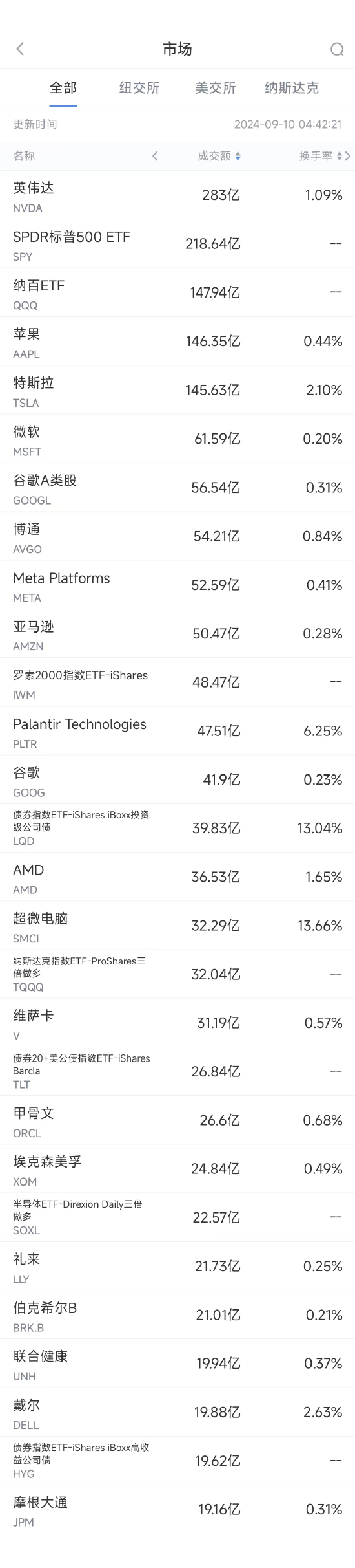 9月9日美股成交额前20:苹果推出首款AI手机,但国行版暂不支持AI功能