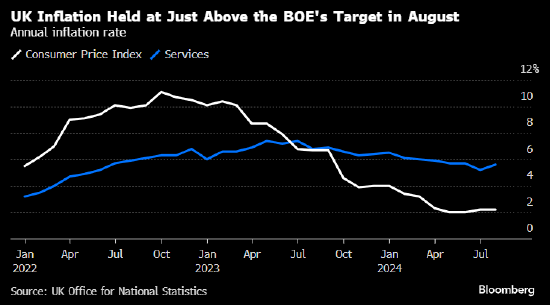 英国8月通货膨胀率维持在略高于英国央行2%目标的水平,为今年晚些时候进一步降息留出了余地。
