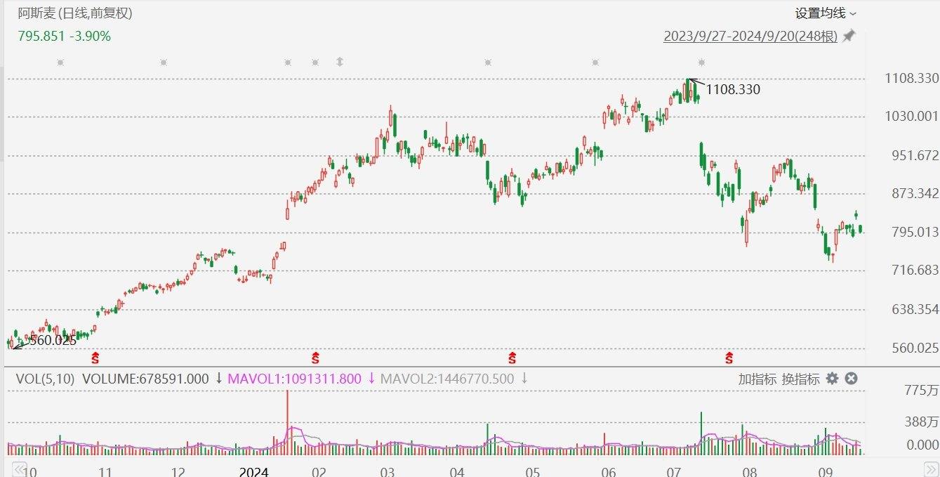 阿斯麦(ASML.US)盘中一度跌4%至794.61美元。消息面上,摩根士丹利将阿斯麦评级从增持下调至中性,将目标价从925欧元下调至800欧元。