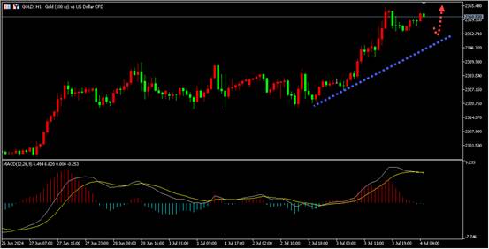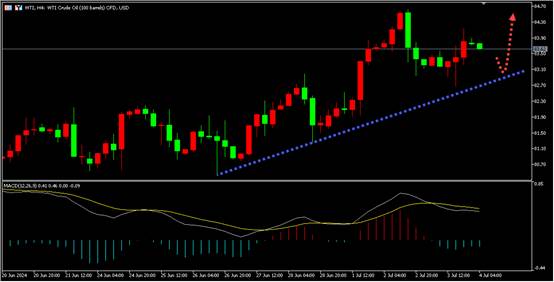 此前报告显示美国原油库存降幅大于预期,但在美国独立日假期前的清淡交投中,对全球库存上升的担忧限制了涨幅。所以油价周三仅上涨约1%,今日远哟继续关注4小时趋势线支撑区域,回调企稳后尝试做多原油。同时投资者需要密切关注地缘局势和经济数据的影响。