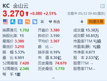 美股异动丨金山云涨2.5% Q1调整后毛利率达16.8%再创新高