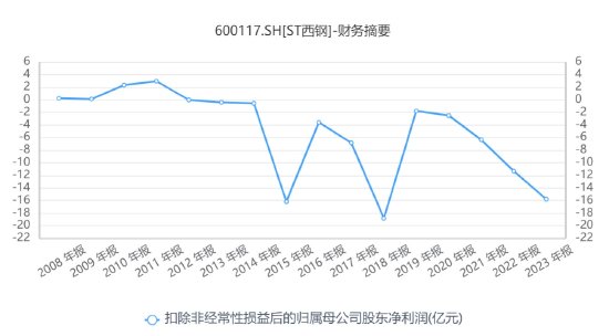 据同花顺iFinD统计,ST西钢自2012年以来,已连续12年扣非净利润为负,累计亏损84.24亿元,其中,2018年扣非净利润亏损最大,达18.82亿元。
