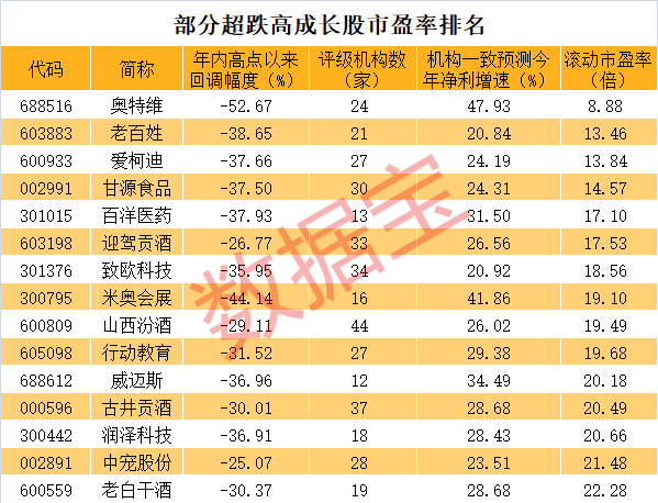 从最新的滚动市盈率角度看,奥特维也排在最低位置,不到9倍。此外,老百姓(603883)、爱柯迪、甘源食品滚动市盈率均不足15倍,百洋医药、迎驾贡酒、致欧科技等滚动市盈率不足20倍。