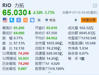 力拓(RIO.US)跌超3.7%,报65.03美元。消息面上,力拓公布第二季度生产数据,皮尔巴拉(Pilbara)铁矿石产量7950万吨;出货量8030万吨,市场预估8050万吨。此外,矿铜产量为17.1万吨,同比提高18%。但力拓警告称,全年铜产量可能位于其指导范围66万吨到72万吨的低端,因为美国犹他州肯尼科特矿的运营中断将会削弱供应。