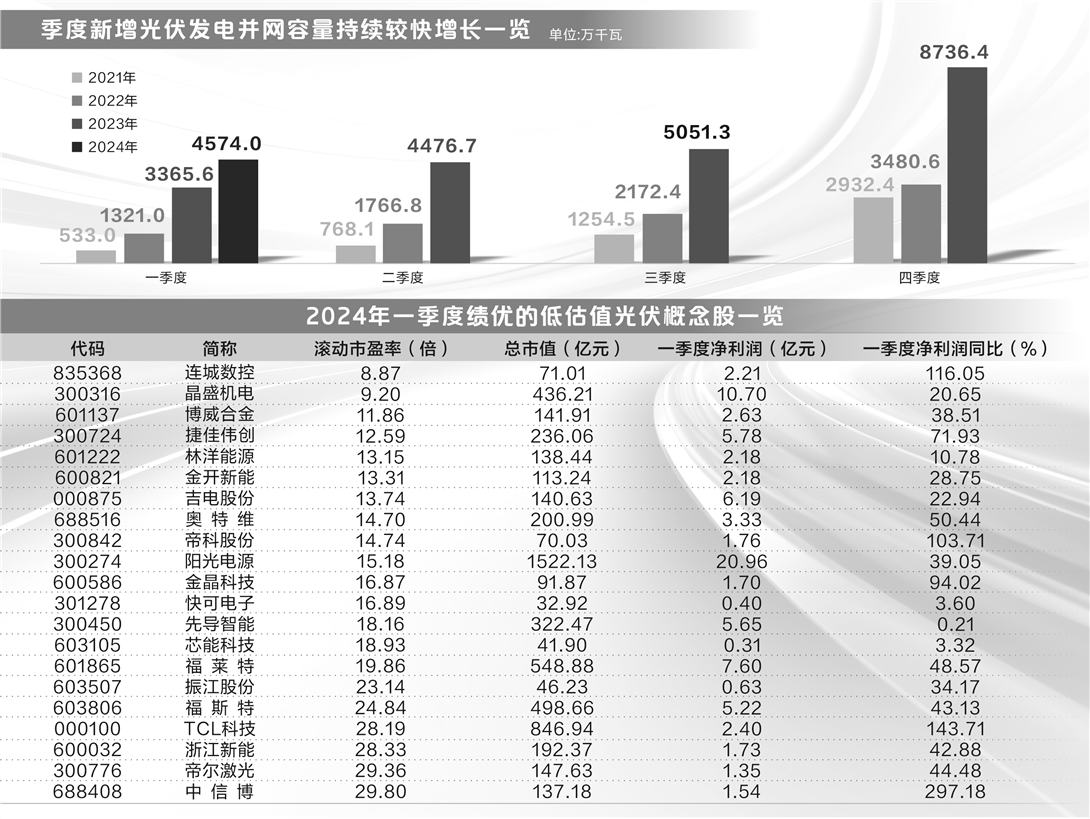 一季度业绩盈利且同比呈现增长的有32只股,这些绩优股中大多数市盈率低于30倍,例如一季度净利润规模居前的阳光电源(300274)、晶盛机电、福莱特(601865),最新市盈率分别为15.18倍、9.2倍和19.86倍。